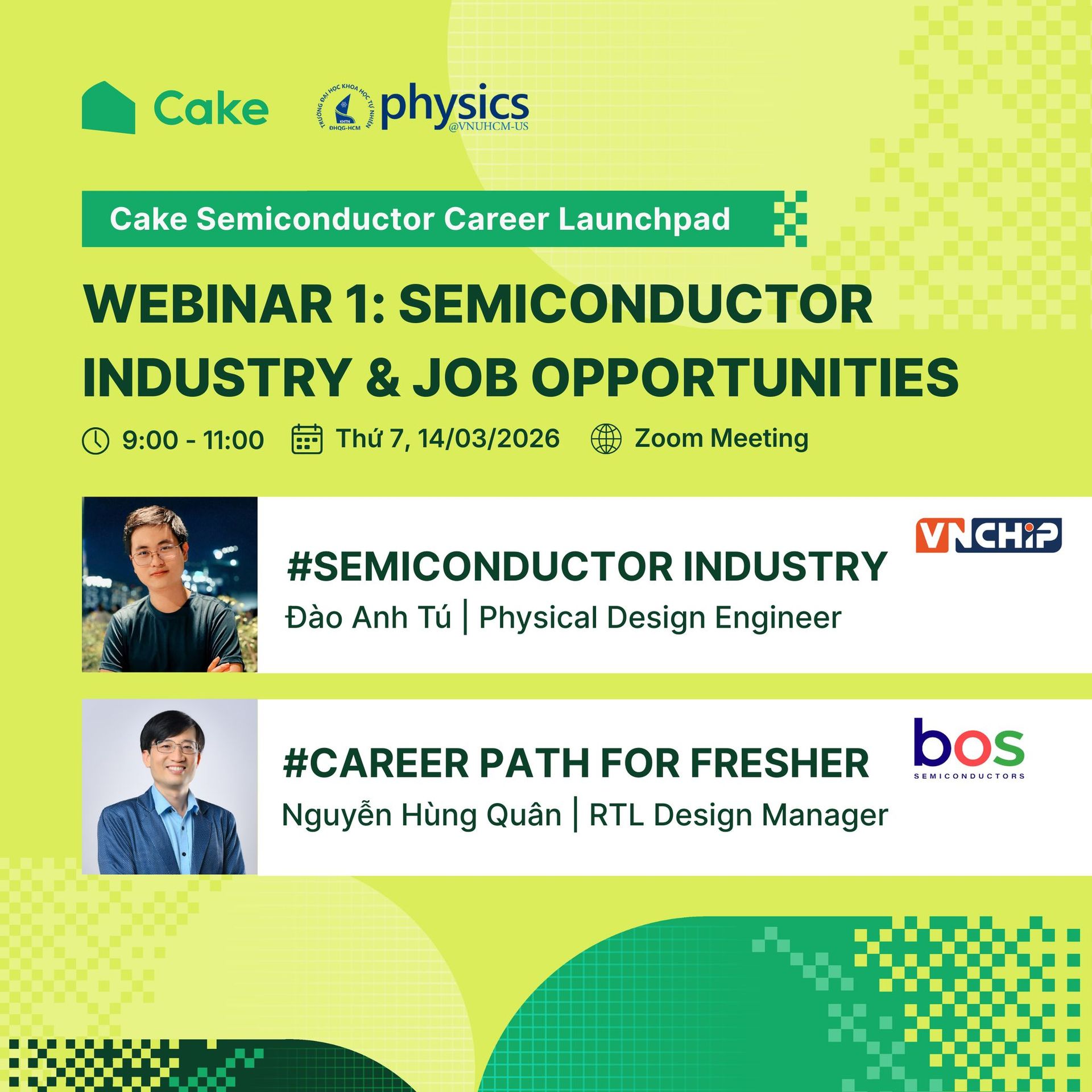 💡 Tất cả sẽ được giải đáp trong Webinar 1 – Semiconductor Industry & Job Opportunities , mở đầu cho series Cake Semiconductor Career Launchpad do Cake phối hợp cùng Khoa Vật Lý - Vật Lý Kỹ Thuật, Trường Đại học Khoa học Tự nhiên, Đại học Quốc gia TP.HCM tổ chức!